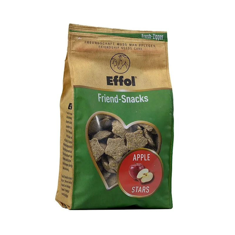 Effol Apple Stars poslastice za konje su napravljene od žitarica s puno vlakana, vitamina i minerala. Dašak melase od šećerne trske čini ih zaista ukusnima.