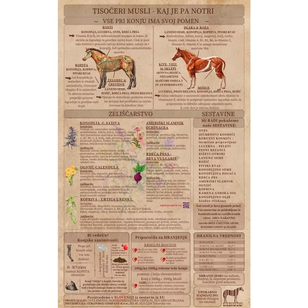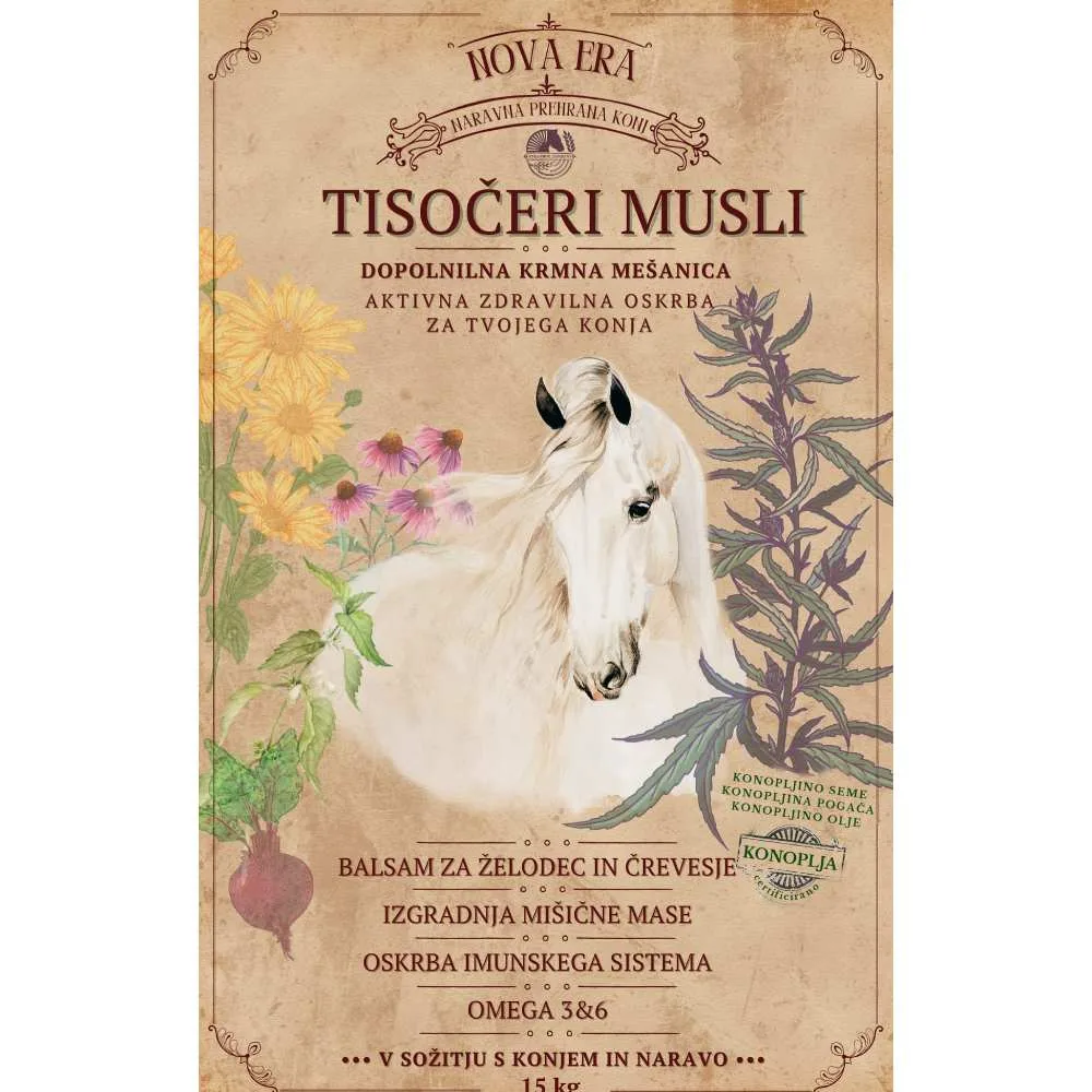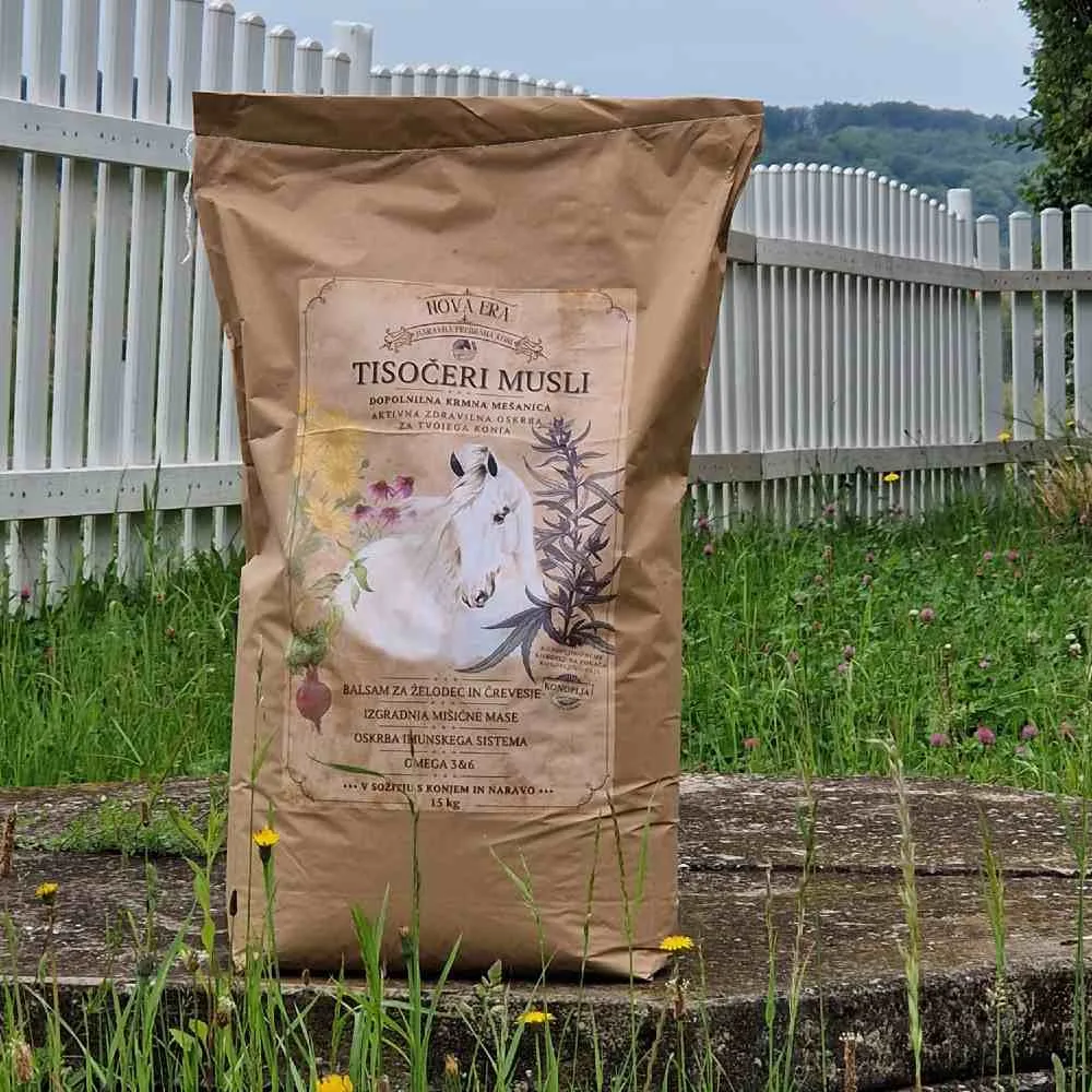 Hrana za konje Tisočeri Musli Nova Era kao dopunska krmna smjesa s raznolikim sadržajem nudi vašem konju potpuno uravnotežen dnevni obrok i zasigurno pokriva sve potrebe za bjelančevinama, aminokiselinama, mineralima i vitaminima te mikroelementima.
