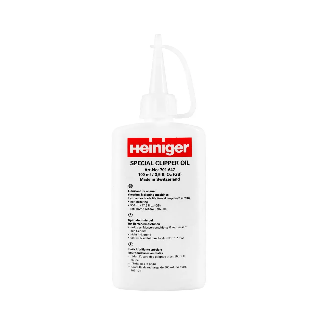 S uljem za električne škare Heiniger životni vijek oštrice je duži, njegovo djelovanje je poboljšano i trenje je puno manje.