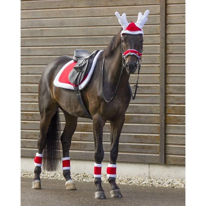 Zelo mehka prešita podsedelnica, narejena iz 100% poliestrskega filca, podložena in okrašena s široko sintetično obrobo iz ovčke. Ima izvezen napis »Merry Christmas« na levi strani in trakove za pritrditev na sedlo.