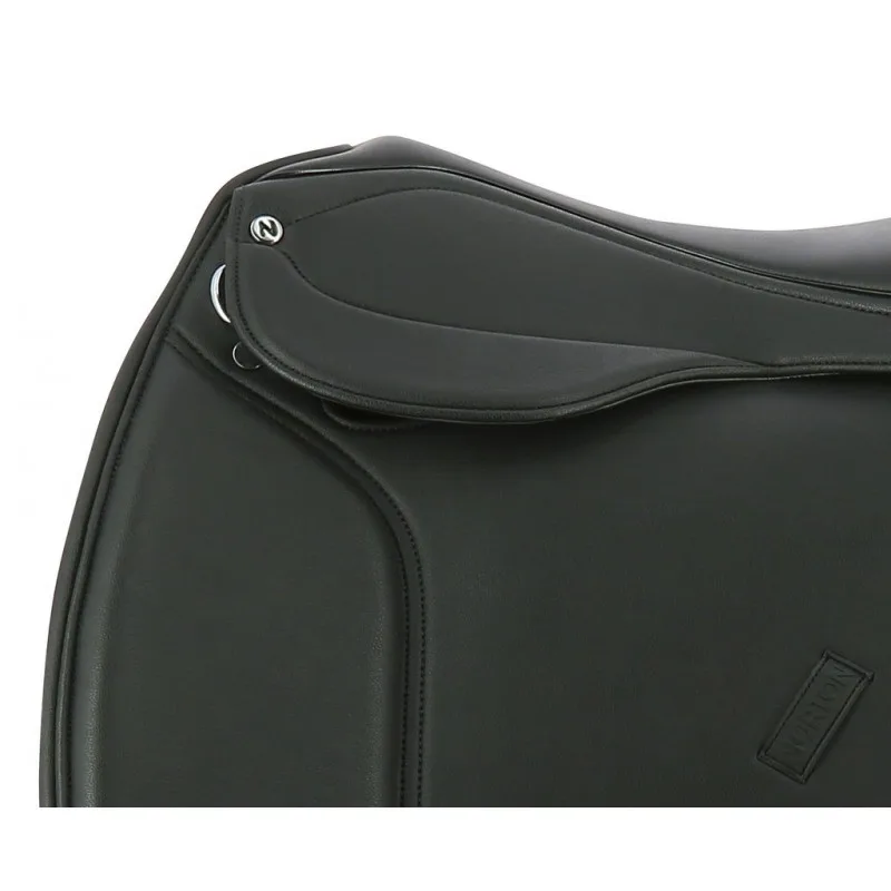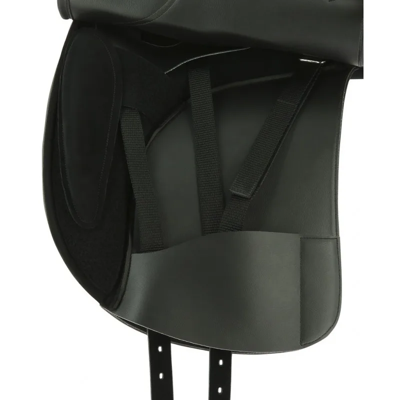 Dresurno sedlo NORTON Rexine Evol izdelano iz trpežnega nedrsečega materiala (sintetično usnje, rexine, EVA in laminirana sintetična tkanina) in všitim okrasnim svetlečim pasom na sedišču.