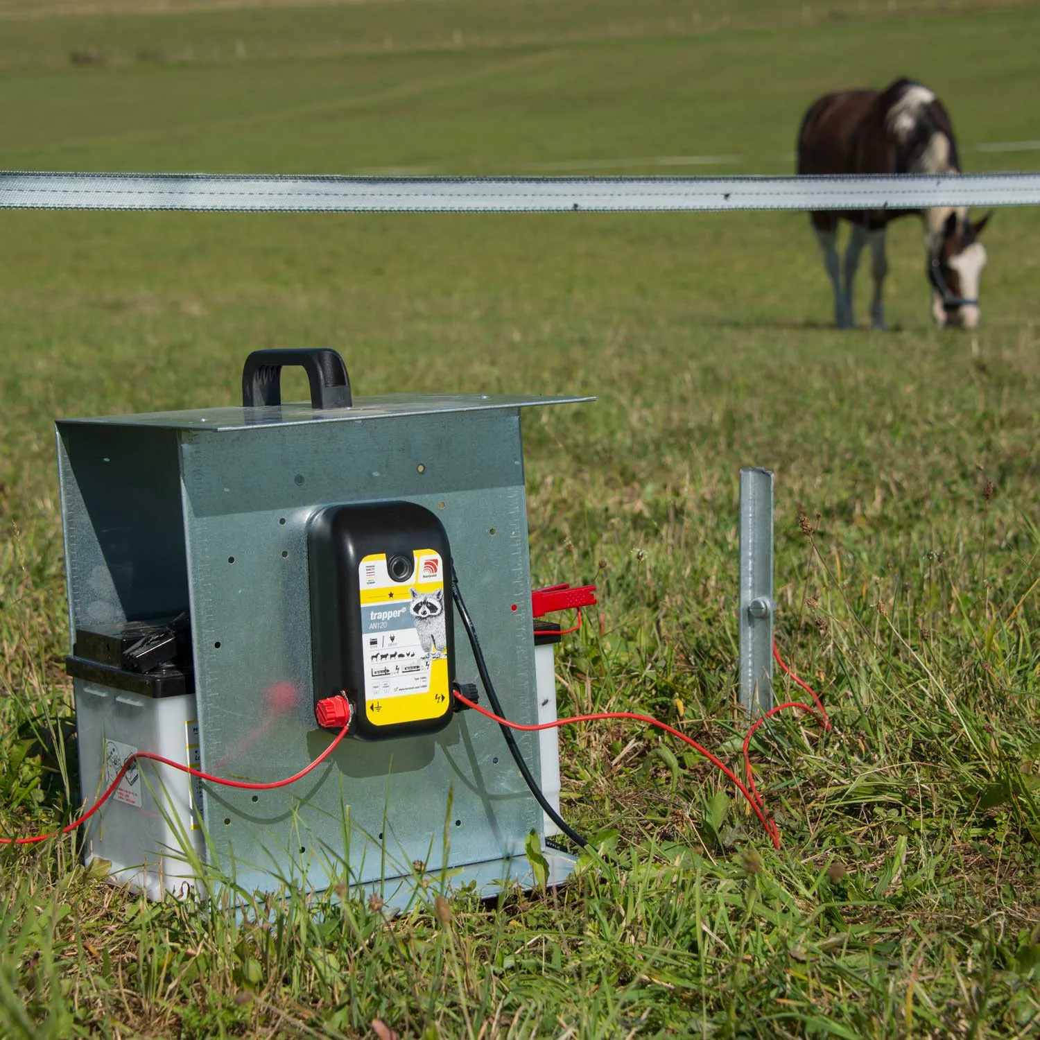 Električni pastir Horizont Trapper AN120 kombi se lahko uporablja v kombinaciji z 12V akumulatorjem, ki ni priložen ali pa ga priklopimo samostojno na električno omrežje 230V (priložen adapter).