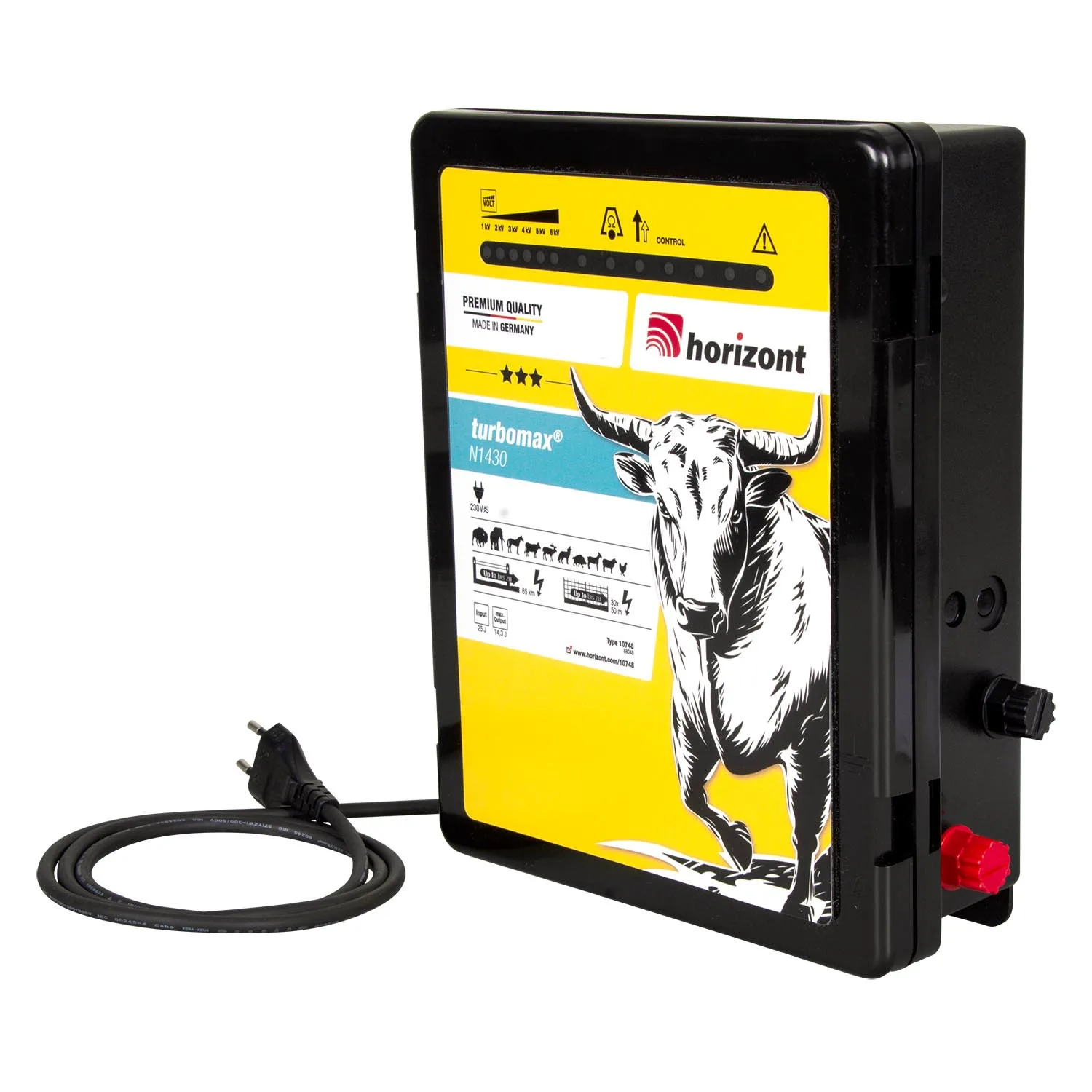 Električni pastir Horizont Turbomax N1430 je naprava, ki se priključi na električno omrežje 230V. Če zazna motnje na ograji (vegetacija ali morebitne druge izgube energije) še vedno zagotavlja maksimalno moč približno 55 sekund. Ko Turbomax zazna spremembo v ograji večjo kot 50 Ohmov (npr. stik z živaljo), bo zmanjšal energijo na 5J ali manj. Ob nenadnih spremembah v uporu se bo aktiviral alarm kateri bo trajal 10 minut optično in zvočno. Med alarmom se zmanjša frekvenca pulza na 3s. To pomeni, da naprava deluje zanesljivo pod najtežjimi okoliščinami. Pastir je primeren za velike in oddaljene pašnike, saj je dovolj močan in odporen.