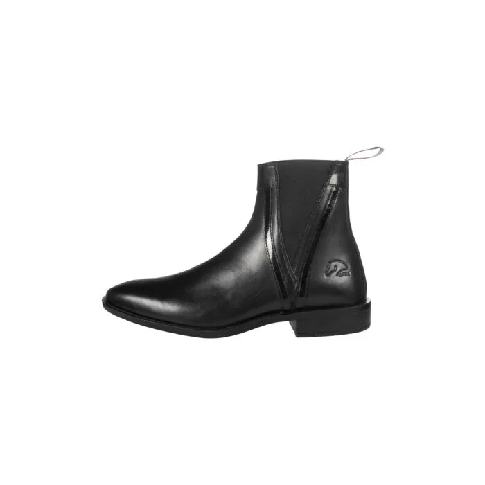 Jahalni gležnarji, združujejo kakovostne materiale z elegantnim dizajnom in funkcionalnimi detajli. Zgornji del iz pravega usnja dopolnjujejo prefinjeni detajli iz lakastega usnja. Zahvaljujoč dvema elastičnima vstavkoma in praktični zanki za lažje obuvanje gležnjar omogoča odlično prileganje in največje udobje. Elastičen in nedrseč gumijast podplat s peto zagotavlja dober oprijem in stabilnost. Dizajn dopolnjuje diskretno vtisnjen logotip HKM, zaradi česar je gležnjar stilski spremljevalec tako v hlevu kot v vsakdanjem življenju.