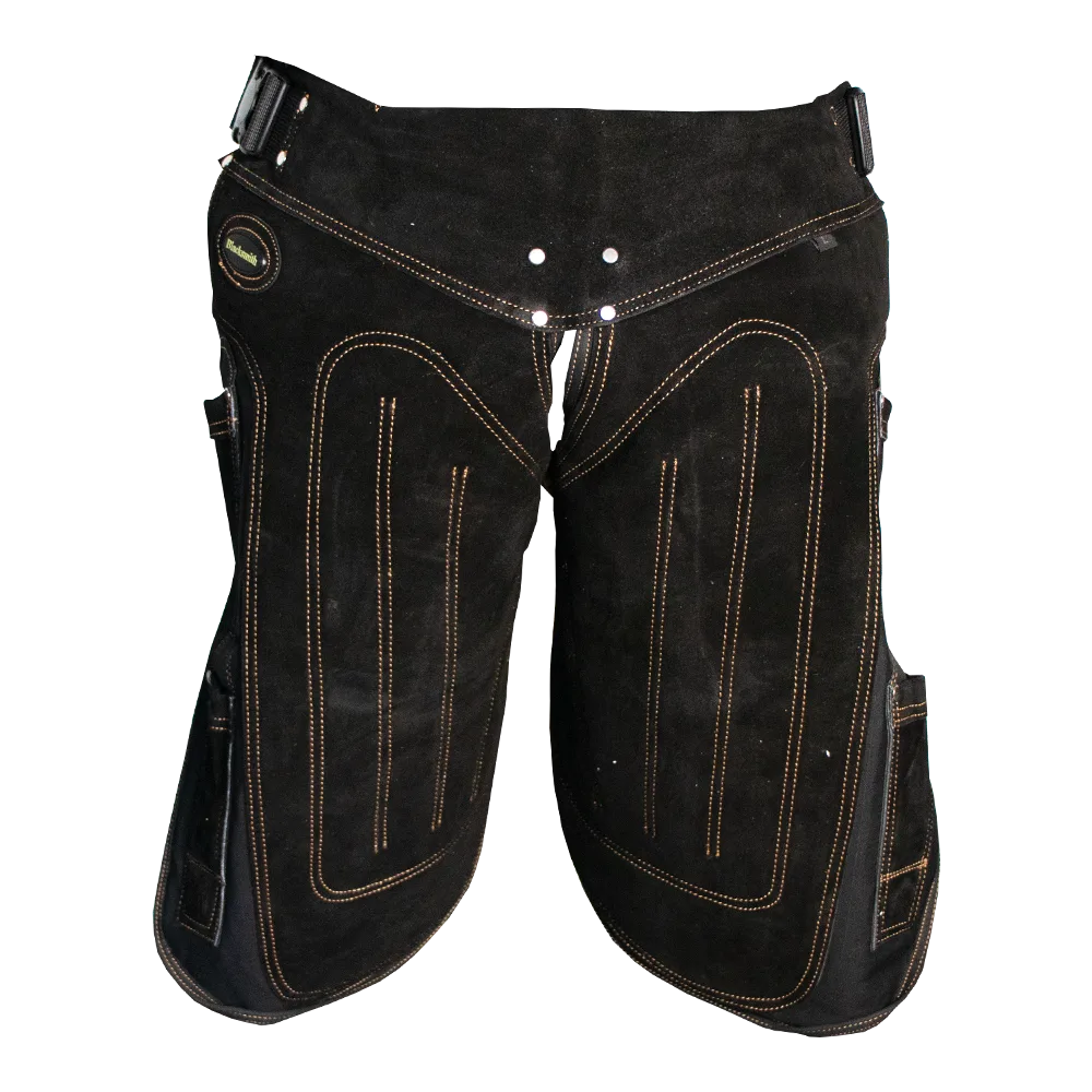 Primerno za: podkovanje in delo v kovačiji, kjer potrebuješ zaščito stegen in priročno odlaganje orodja (noži, magnet).