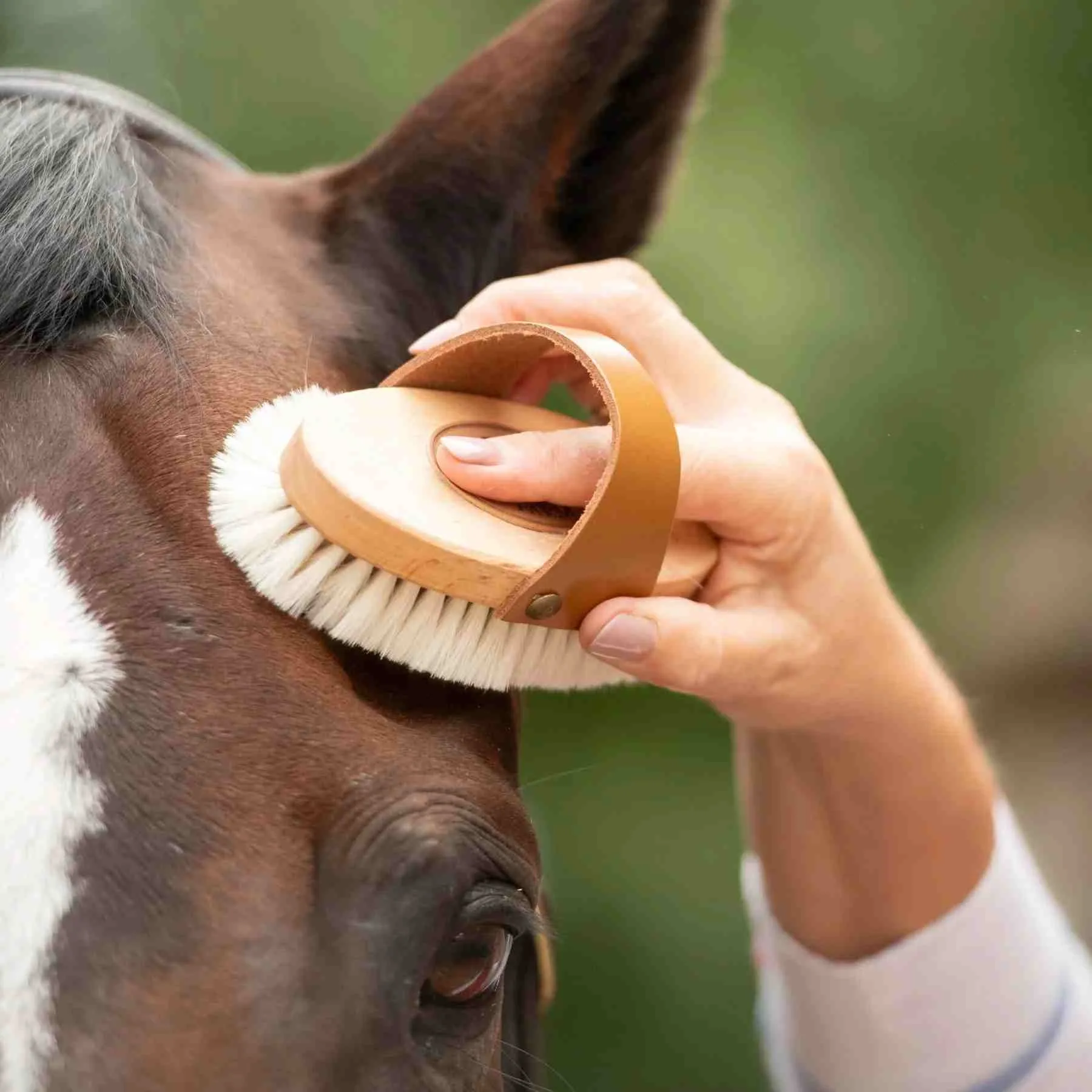Krtača Borstiq Goat Hair za nego konj je izdelana iz najmehkejše kozje dlake. Podložena z bukovim lesom in z oblikovanim usnjenim pasom, ki omogoča udobno in enostavno uporabo. To so vrhunske, luksuzne krtače, s katerimi bodo vsi konji uživali v razvajanju. Krtače Goat Hair Horse so na voljo v treh velikostih – majhni, srednji in veliki. Krtača je optimalna za zelo občutljive konje.