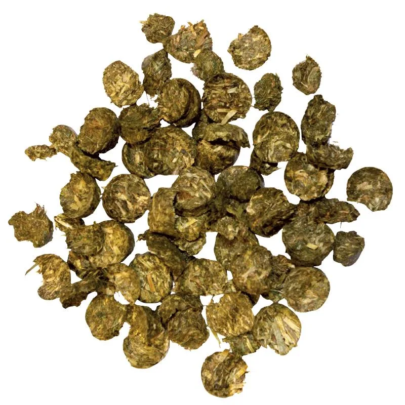 Brez žitaric ,Brez melase ,Nizka vsebnost sladkorja ,Zmanjšan škrob ,Spodbuja žvečenje ,EADCM skladno po FEI ,Malo prahu |