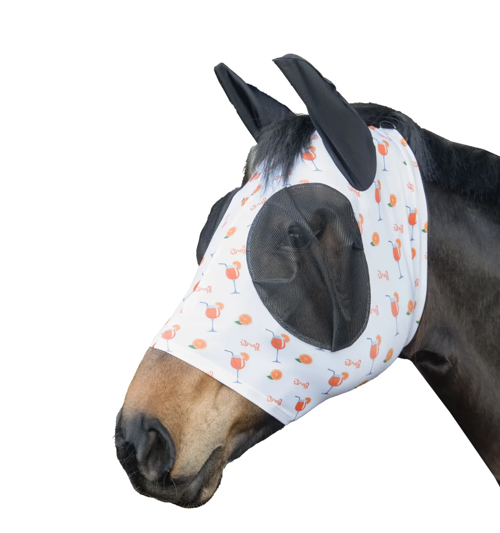 Maska proti muham HKM Splash je praktičen in zvest spremljevalec toplih poletnih mesecev, ko muhe in insekti konju ne dajo miru. Elastični, izjemno lahki raztezni material se prilagaja obliki konjske glave ter zagotavlja varno in udobno oprijemanje brez pritiska ali drgnjenja. Zahvaljujoč vgrajenemu UV-filtru s faktorjem zaščite 50+ maska učinkovito ščiti občutljivo konjsko glavo tudi pred škodljivim soncem – idealna izbira za dolge ure na paši ali pri delu. Živahen motiv Splash maski doda pisan in igriv pridih, hkrati pa je del usklajene kolekcije, ki zajema še odejo in sedlno podlogo v enakem vzorcu.