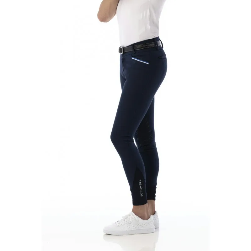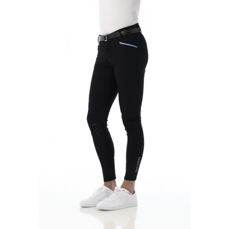 Te jahalne hlače imajo vse, kar moški potrebuje: podporo, udobje, zračnost, vzdržljivost in klasičen kroj. Žepi spredaj obrobljeni z ravnim modro-belim trakom in skriti žepi zadaj. Silikon je odtisnjen samo na kolenih. Spodnji del hlačnice iz elastana.