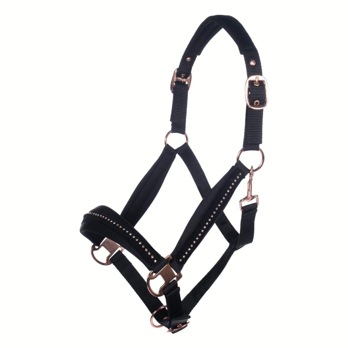 Oglavka HKM Berry z mehko oblazinjenim nosnikom in zatiljem. Rosegold kovisko okovje in kristalčki, ki poudarijo celoten videz.