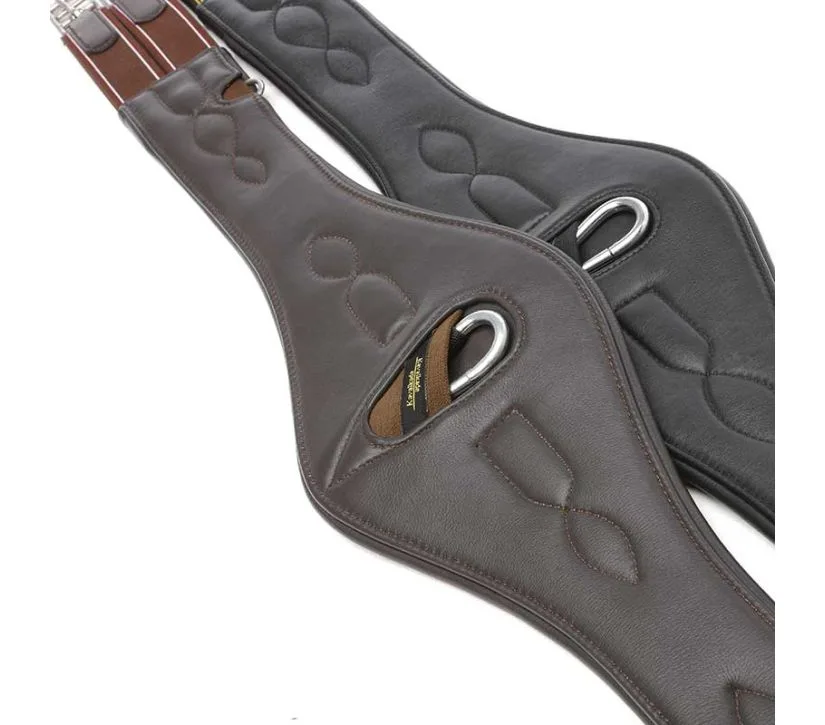 Na sredini podsedelnega pasu je pas nekoliko razširjen, kar omogoča enakomernejšo porazdelitev pritiska ter nudi udobnejše prileganje konju.