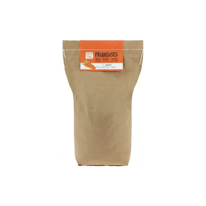 Priboljški Hippotonic s korenčkovim okusom so dopolnilna krma za konje, zasnovana za vsakodnevno nagrajevanje in utrjevanje zaupanja med konjem in jahačem. Sestavljeni so iz naravnih sestavin, ki jih konji radi jedo, in so primerni kot priboljšek po treningu, med vajami ali preprosto za nagrado. Osnova iz pšeničnih in ovsenih otrobov ter ječmena zagotavlja energijo v obliki, ki je za konje dobro prebavljiva, melasa sladkornega trsa pa poskrbi za prijetno sladkobo brez pretiravanja.