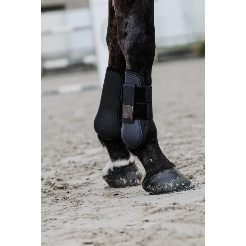 Elegantni in zanesljivi ščitniki za sprednje noge iz linije Tara so zasnovani za vsakodnevni trening in tekmovanja. Trpežen, anatomsko oblikovan ščitnik nudi ciljno zaščito kit in notranje strani sprednjih nog, mehka notranja podloga pa razporedi pritisk in poskrbi za udobje tudi pri daljšem delu. Dvojni elastični trakovi z hitrim zapenjanjem držijo ščitnik varno na mestu, hkrati pa omogočajo natančno prileganje brez “ščipanja”. Gladka zunanjost se hitro očisti – blato in pesek preprosto obrišeš.