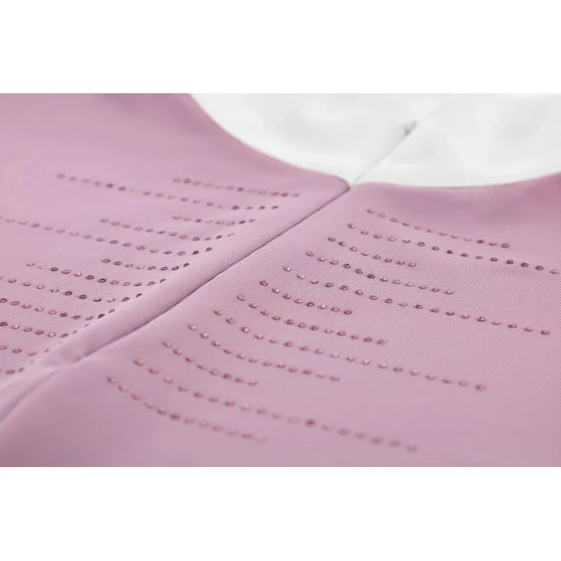 Tekmovalna polo majica s kratkimi rokavi E-T Suzanne v temno roza barvi je zasnovana za jahačice, ki na tekmovanju ne želijo sklepati kompromisov med videzom in udobjem. Prilegajoč kroj poudari postavo, visok ovratnik pa doda eleganco, ki je nepogrešljiva na tekmovalnem parkurju ali dresurni areni.