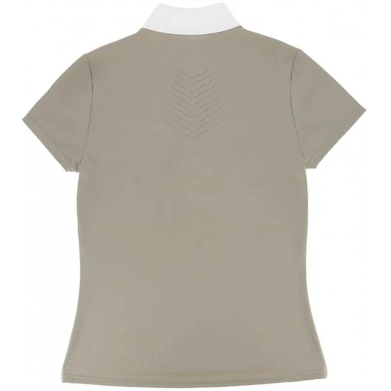Tekmovalna polo majica s kratkimi rokavi E-T Suzanne v temno bež barvi je zasnovana za jahačice, ki na tekmovanju ne želijo sklepati kompromisov med videzom in udobjem. Prilegajoč kroj poudari postavo, visok ovratnik pa doda eleganco, ki je nepogrešljiva na tekmovalnem parkurju ali dresurni areni.