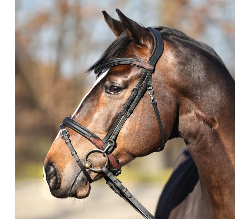 Uzda Kavalkade Everyday je kvalitetno izdelana uzda, namenjena vsakodnevni uporabi pri delu z vašim konjem.Na stranske paščke so nameščeni karabini, ki omogočajo lažjo in hitrejšo menjavo brzde.