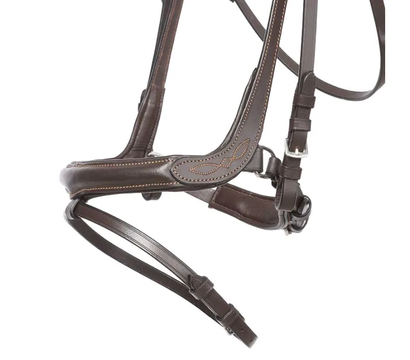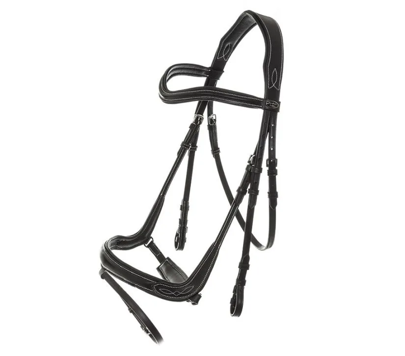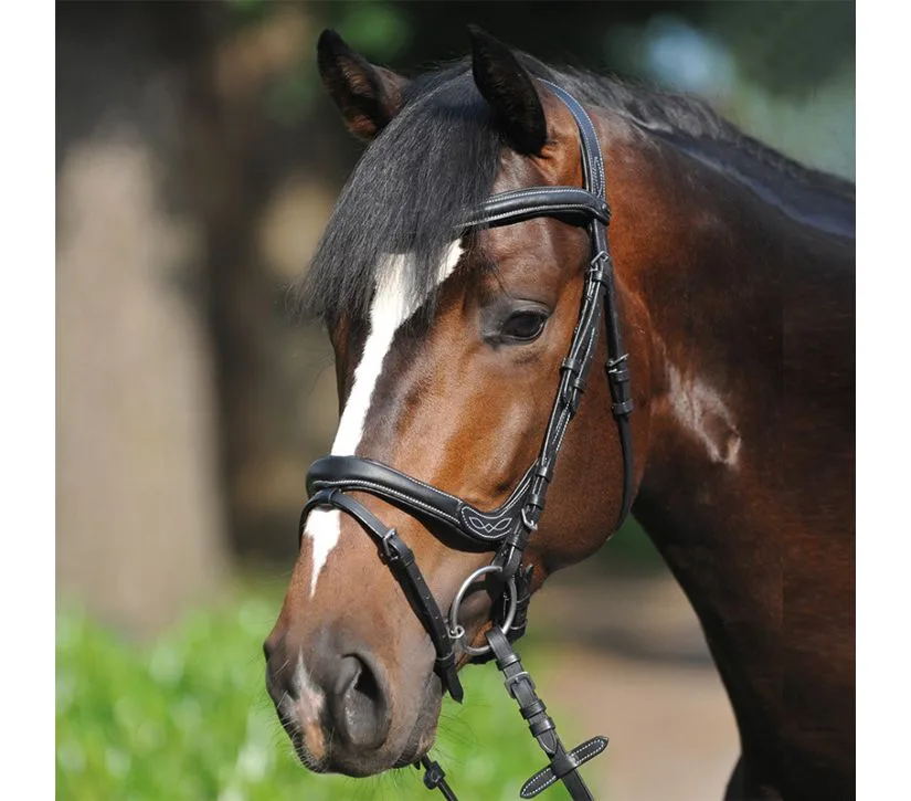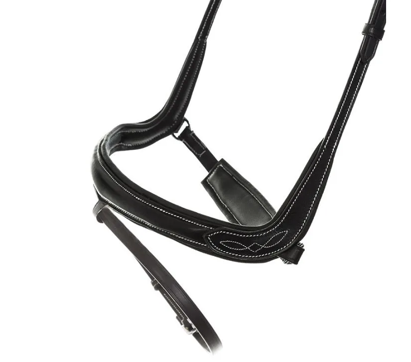 Uzda Ivy je stilsko dovršena, z zelo natančnimi, kontrastnimi šivi, kateri dajejo uzdi še bolj eleganten videz. V ceno so vključene še nedrseče vajeti.