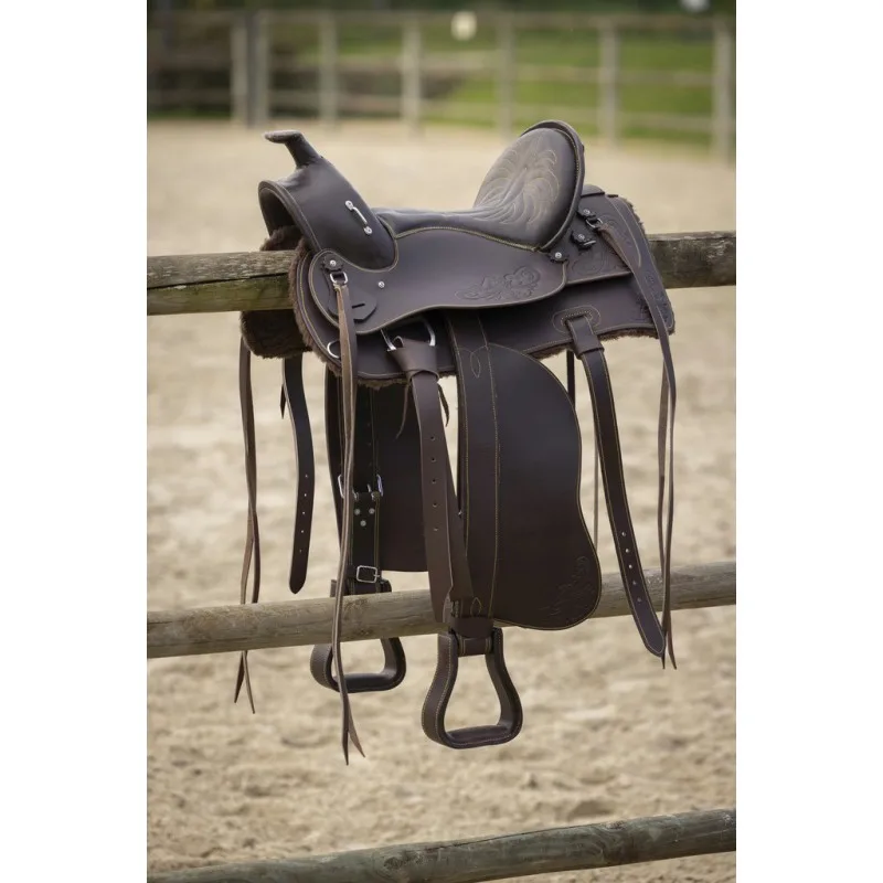 Western sedlo Westride Santa Fe je western sedlo mehiškega tipa, izdelano iz oljenega bivoljega in je primerno za konje z ožjim in visokim vihrom.