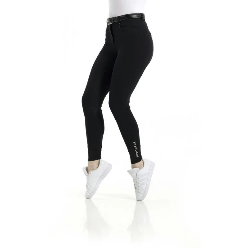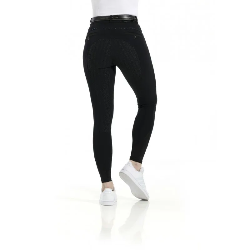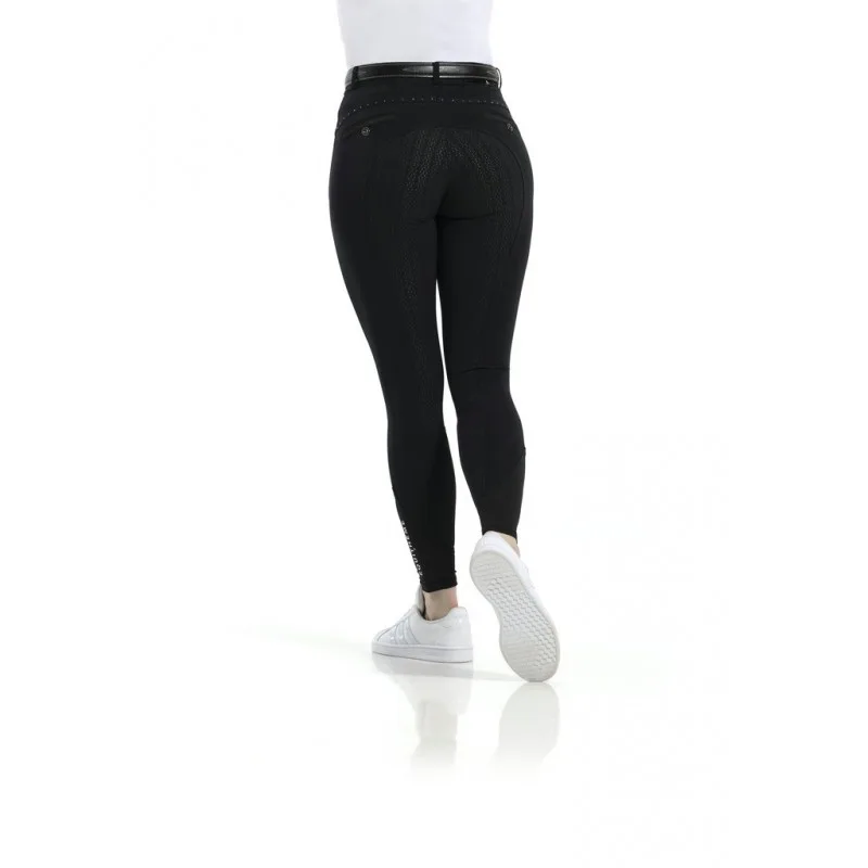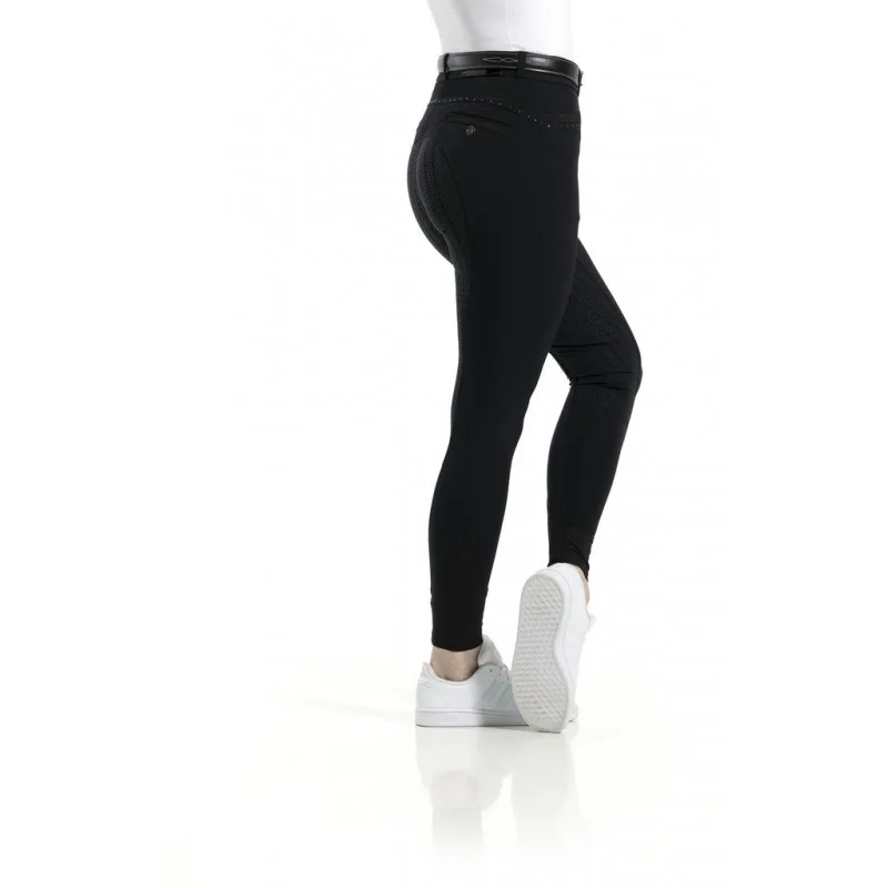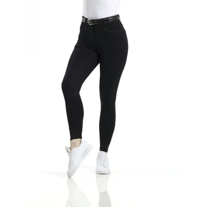 Ženske jahalne hlače E-T Safir – Elegantne, prefinjene hlače z okrasnimi kamenčki za športne in trendovske jahače. Močna raztegljiva tkanina zagotavlja dobro oporo. Nedrseče sedišče, v celoti potiskano s silikonom, poskrbi za največji oprijem. Spodnji del noge iz elastana. Klasičen kroj. Sprednji in zadnji žepi, obrobljeni z kamenčki.